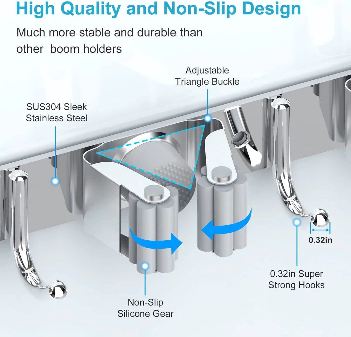【Premium kwaliteit en stabiel design】 Deze mop- en bezemhouder is gemaakt van hoogwaardig SUS304 roestvrij staal, dat corrosiebestendig, krasbestendig, waterdicht is, veel duurzamer dan andere plastic mophouders.