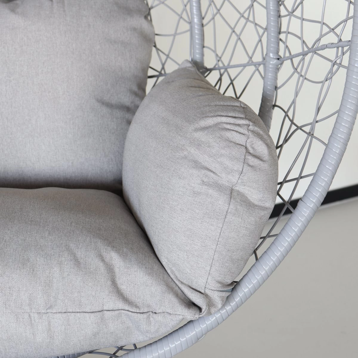Deze moderne grijze hangstoel heeft een mooie Egg vorm. Hierdoor kan deze hangstoel voor zowel werk als voor ontspanning gebruikt worden. Het frame van de stoel is gemaakt van metaal, de stoel zelf is gemaakt van Wicker met metalen ondersteuningen. Hierdoor kan de hangstoel zowel binnen als overkapt buiten geplaatst worden, mits jij er zorg voor draagt dat deze schoon en droog staat. Het is namelijk nog steeds metaal, wat in een vochtige omgeving kan gaan roesten! Deze stoel staat leuk in zowel de woon- en slaapkamer als in de tuin. Geniet van de zonnestralen terwijl je lekker aan het lezen bent of lees voordat je naar bed gaat nog even comfortabel in deze hangstoel. Ook leuk voor kinderen om in de slaapkamer te hebben!
