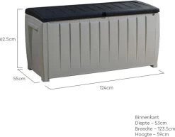 Keter Brushwood Opbergbox – Kussenbox – 455L – 145×69,7×60,3cm – Taupe