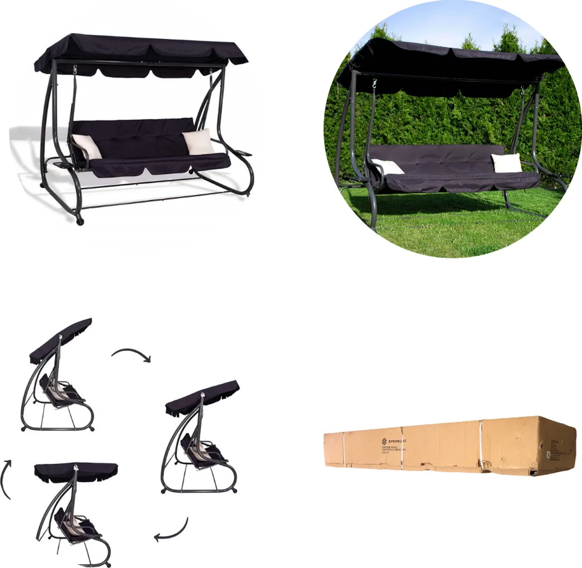 Gun jezelf een heerlijk relaxmomentje in de schommelbank van Springos. De schommel is gemaakt van de beste materialen en is van hoogwaardige kwaliteit. Deze comfortabele 3-zits schommelbank wordt geleverd met 2 zachte kussens die niet alleen het gebruiksgemak verhogen, maar het ziet er ook nog eens gezellig uit.