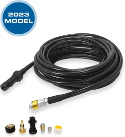 - Geschikt voor meerdere hogedrukreinigers – Of je nu een KΓ€rcher K2 t/m K7 of Winner hebt, een Parkside, Aldi of Lavor hogedrukreiniger: deze rioolslang wordt geleverd met meerdere adapters zodat de rioolslang op jouw hogedrukreiniger past!